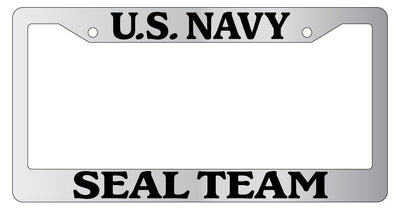 Chrome License Plate Frame U.S. Navy Seal Team Auto Accessory Novelty Military U.S. Navy Seal Team Chrome license plate frame made from high impact ABS plastic, chrome plated, and covered with color vinyl printing. This frame is designed to last. Steel chrome frames when they get scratched will rust and rot away. These frames will last longer than your car.
