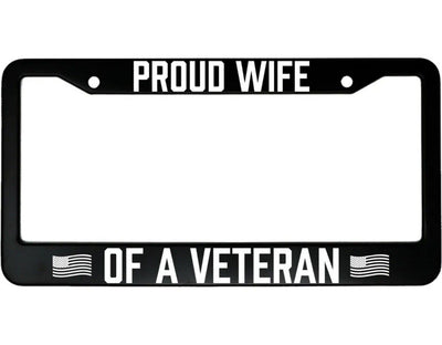 Proud Wife of a Veteran Aluminum Car License Plate Frame. CUSTOM MADE OF - Black Powder Coated Stainless Steel THESE FRAMES ARE STANDARD COMES WITH SCREWS AND CAPS THEY FIT ALL LICENSE PLATES WITH U.S. & CANADA Plates Frames are custom made to order and we can make any custom work you want AND PLEASE EMAIL ME WITH ANY QUESTIONS. Best price All frames comes with black screw caps and warranty against any defect Proudly Made in The USA