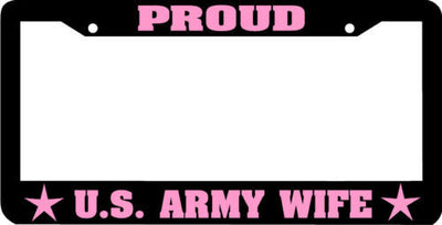 PROUD US WIFE License Plate Frame Plastic License Plate Frame Polystyrene plastic with vinyl graphics. Strong with tabs on the back to secure your plate to the frame. This is a buy it now for the frame pictured It is designed to fit a US/CANADA license plate.