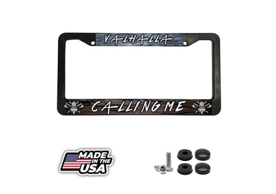 Show your love for Valhalla and the Viking Army with this brand new black license plate frame featuring the iconic Norse symbol of Ragnarök. Crafted by the renowned brand BLVD, this frame offers universal fitment and is made in the United States. With a manufacturer warranty of 1 year, you can trust in the quality of this accessory for your car or truck. Perfect for any Viking enthusiast, this frame is sure to make a statement on the road. BRAND NEW VALHALLA CALLING ME BLACK LICENSE PLATE FRAME * GREAT FOR ALL CARS, TRUCKS SUVS! FRAMES ARE MADE AND SHIPPED FROM THE USA . HIGH PERFORMANCE DIGITALLY PRINTED/LAMINATED VINYL IS MOUNTED TO THE BLACK FRAMES TO GIVE IT ITS UNIQUE APPEARANCE FRAMES ARE MADE OF ABS BLACK PLASTIC.FRAMES ARE UNIVERSAL FIT FOR ANY STANDARD US LICENSE PLATE. FREE SHIPPING IN THE US VIA USPS FIRST CLASS W/ TRACKING!