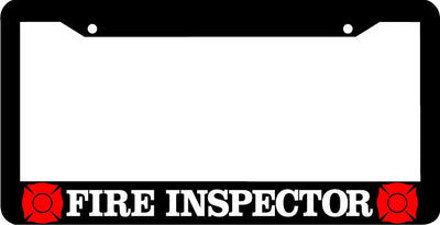 FIRE INSPECTOR LICENSE PLATE FRAME Plastic License Plate Frame Polystyrene plastic with vinyl graphics. Strong with tabs on the back to secure your plate to the frame. This is a buy it now for the frame pictured It is designed to fit a US/CANADA license plate.