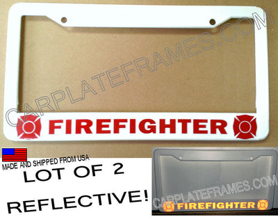 lot of 2 REFLECTIVE FIREFIGHTER fire fighter safety red License Plate Frame