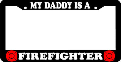 MY DADDY IS A FIREFIGHTER LICENSE PLATE FRAME Plastic License Plate Frame Polystyrene plastic with vinyl graphics. Strong with tabs on the back to secure your plate to the frame. This is a buy it now for the frame pictured It is designed to fit a US/CANADA license plate.