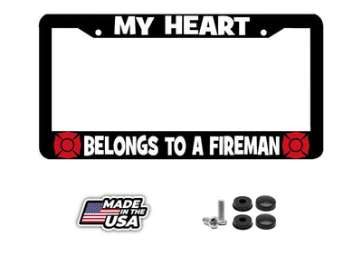 MY HEART BELONGS TO A FIREMAN fire man firefighter License Plate Frame
