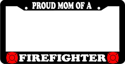 PROUD MOM OF A FIREFIGHTER LICENSE PLATE FRAME Plastic License Plate Frame Polystyrene plastic with vinyl graphics. Strong with tabs on the back to secure your plate to the frame. This is a buy it now for the frame pictured It is designed to fit a US/CANADA license plate.