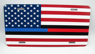 Show your support for the police and firefighters with this thin blue and red line American flag metal car license plate. This license plate is made of aluminum and metal, and features a printed design with the American flag and thin blue and red lines. It has a universal fitment and can be easily attached with screws. Perfect for EVs, buses, vans, minivans, RVs, SUVs, cars, trucks, caravans, and trailers, this license plate can be placed on the front, rear, or both sides of your vehicle. It has a glossy finish and is suitable for any proud American who wants to show their support for law enforcement and firefighters. Get yours now and display it proudly on your vehicle! THIN BLUE AND RED LINE AMERICAN FLAG METAL CAR LICENSE PLATE AUTOTAG. SUPPORT POLICE AND FIREFIGHTERS STANDARD U.S. SIZE 12" X 6" PRE-DRILLED HOLES FOR EASY INSTALLATION MADE OUT OF GOOD QUALITY ALUMINUM FOR A WEATHER RESISTANT FINISH, MADE IN U.S.A. FAST FREE SHIPPING GREAT GIFT IDEA THANK YOU