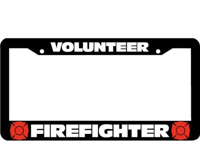 VOLUNTEER FIREFIGHTER FIRE FIGHTER License Plate Frame. Custom made license plate frames made from black ABS Plastic, they are standard frames that come with their own screws and screw caps. They are made to fit all U.S. and Canadian Car License plates. All frames are custom made to order and you can also request any custom work you want done on them. If you have any question or would like more information. Send me an email.