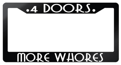 4 Doors More Whores Glossy Black Plastic License Plate Frame 4 Doors More Whores Glossy Black Plastic License Plate Frame Description 4 Doors More Whores Glossy Black Plastic License Plate Frame Glossy Black Plastic license plate frame made from high impact ABS plastic, covered with color vinyl printing. This frame is designed to last. These frames will last longer than your car.