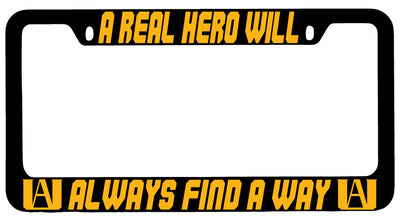 Plus Ultra Black METAL License Plate Frame My Hero Academia A Real Hero Always Finds A Way Black METAL License Plate Frame My Hero Academia Description A Real Hero Always Finds A Way Black METAL License Plate Frame My Hero Academia made from high quality steel, covered with premium outdoor color vinyl printing with a minimum life expectancy of 7 year. The vinyl is designed to stand up to the elements and will not peel off in car washes or other elements your car may be subjected to. This frame is designed to last. Designed to withstand outdoor conditions We do all kinds of different products.