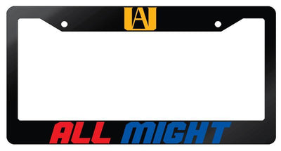 All Might Glossy Black Plastic License Frame My Hero Academia All Might Glossy Black Plastic License Frame My Hero Academia Description made from high impact ABS plastic, covered with color vinyl printing. This frame is designed to last. These frames will last longer than your car.