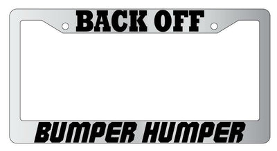 Back Off Bumper Humper Chrome Plastic License Plate Frame Auto Accessory Back Off Bumper Humper Chrome Plastic License Plate Frame Auto Accessory Description Back Off Bumper Humper Chrome Plastic license plate frame made from high impact ABS plastic, chrome plated, and covered with color vinyl printing. This frame is designed to last. Steel chrome frames when they get scratched will rust and rot away. These frames will last longer than your car.