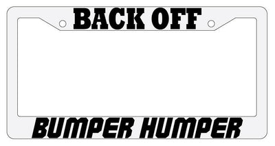 Back Off Bumper Humper White Plastic License Plate Frame Auto Accessory Back Off Bumper Humper White Plastic License Plate Frame Auto Accessory Description Back Off Bumper Humper White license plate frame made from high impact ABS plastic, covered with color vinyl printing. This frame is designed to last. These frames will last longer than your car.
