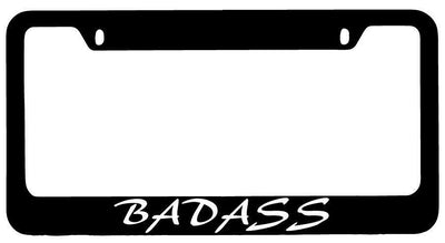 Badass (Cursive) Black METAL License Plate Frame Auto Accessory Badass (Cursive) Black METAL License Plate Frame Auto Accessory Description Badass (Cursive) Black Metal license plate frame made from high quality steel, covered with premium outdoor color vinyl printing with a minimum life expectancy of 7 year. The vinyl is designed to stand up to the elements and will not peel off in car washes or other elements your car may be subjected to. This frame is designed to last. Designed to withstand outdoor conditions We do all kinds of different products.