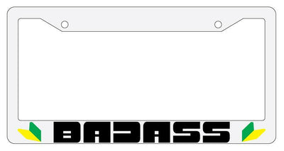 Badass (JDM) White Plastic License Plate Frame Auto Accessory Badass (JDM) White Plastic License Plate Frame Auto Accessory Description Badass (JDM) White license plate frame made from high impact ABS plastic, covered with color vinyl printing. This frame is designed to last. These frames will last longer than your car.