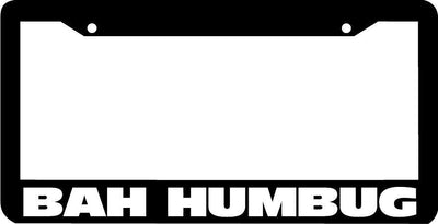BAH HUMBUG License Plate Frame Plastic License Plate Frame Polystyrene plastic with vinyl graphics. Strong with tabs on the back to secure your plate to the frame. This is a buy it now for the frame pictured It is designed to fit a US/CANADA license plate.