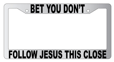 Bet You Don't Follow Jesus This Close Chrome METAL License Plate Frame Mod-GRAPH9856236-9590