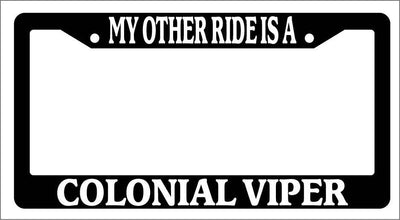 Black License Frame My Other Ride Is A Colonial Viper (Battlestar For Galactica) My Other Ride Is A Colonial Viper Black license plate frame made from high impact ABS plastic, covered with color vinyl printing. This frame is designed to last. These frames will last longer than your car.