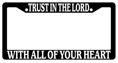 Black License Plate Frame Trust In The Lord With All Of Your Heart Christian Trust In The Lord With All Of Your Heart Black license plate frame made from high impact ABS plastic, covered with color vinyl printing. This frame is designed to last. These frames will last longer than your car.