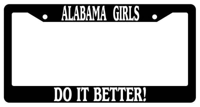 Black License Plate Frame Alabama Girls Do It Better Auto Accessory Black license plate frame Alabama Girls Do It Better made from high impact ABS plastic, covered with color vinyl printing. This frame is designed to last. These frames will last longer than your car.