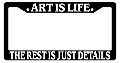 Black License Plate Frame Art Is Life The Rest Is Just Details Auto Accessory Art Is Life The Rest Is Just Details Black license plate frame made from high impact ABS plastic, covered with color vinyl printing. This frame is designed to last. These frames will last longer than your car.