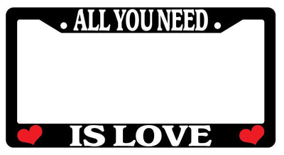 Black License Plate Frame Auto Accessory All-You-Need-Hearts Black License Plate Frame Auto Accessory All-You-Need-Hearts made from high impact ABS plastic, covered with color vinyl printing. This frame is designed to last. These frames will last longer than your car.