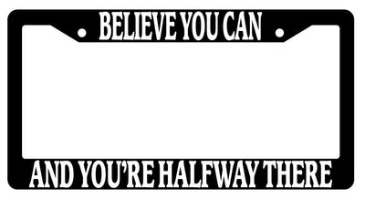 Black License Plate Frame Auto Accessory Believe-You-Can Black License Plate Frame Auto Accessory Believe-You-Can made from high impact ABS plastic, covered with color vinyl printing. This frame is designed to last. These frames will last longer than your car.