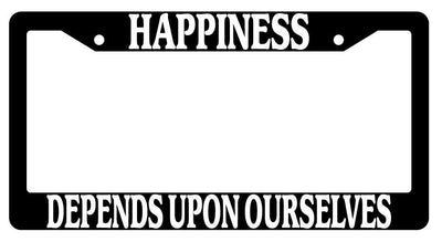 Black License Plate Frame Auto Accessory Happiness-Depends Black License Plate Frame Auto Accessory Happiness-Depends made from high impact ABS plastic, covered with color vinyl printing. This frame is designed to last. These frames will last longer than your car.