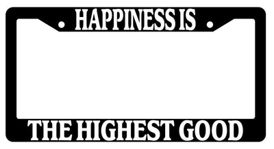 Black License Plate Frame Auto Accessory Happiness-Is Black License Plate Frame Auto Accessory Happiness-Is made from high impact ABS plastic, covered with color vinyl printing. This frame is designed to last. These frames will last longer than your car.