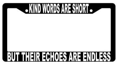 Black License Plate Frame Auto Accessory Kind-Words-Are-Short Black License Plate Frame Auto Accessory Kind-Words-Are-Short Black License Plate Frame Auto Accessory Kind-Words-Are-Short made from high impact ABS plastic, covered with color vinyl printing. This frame is designed to last. These frames will last longer than your car.