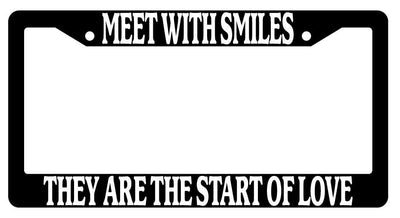 Black License Plate Frame Auto Accessory Meet-With-Smiles Black License Plate Frame Auto Accessory Meet-With-Smiles made from high impact ABS plastic, covered with color vinyl printing. This frame is designed to last. These frames will last longer than your car.