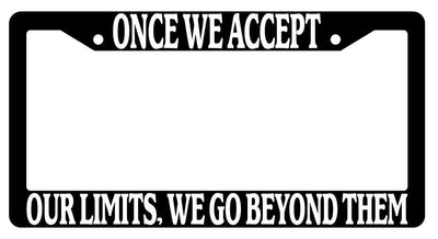 Black License Plate Frame Auto Accessory Once-We-Accept Black License Plate Frame Auto Accessory Once-We-Accept Black License Plate Frame Auto Accessory Once-We-Accept made from high impact ABS plastic, covered with color vinyl printing. This frame is designed to last. These frames will last longer than your car.