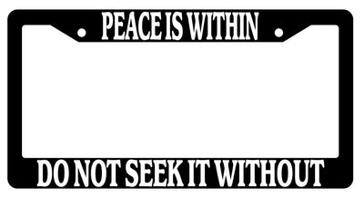 Black License Plate Frame Auto Accessory Peace-Is-Within Black License Plate Frame Auto Accessory Peace-Is-Within made from high impact ABS plastic, covered with color vinyl printing. This frame is designed to last. These frames will last longer than your car.