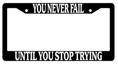 Black License Plate Frame Auto Accessory You-Never-Fail Black License Plate Frame Auto Accessory You-Never-Fail Black License Plate Frame Auto Accessory You-Never-Fail made from high impact ABS plastic, covered with color vinyl printing. This frame is designed to last. These frames will last longer than your car.