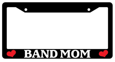 Black License Plate Frame BAND MOM Auto Accessory Novelty BAND MOM Black license plate frame made from high impact ABS plastic, covered with color vinyl printing. This frame is designed to last. These frames will last longer than your car.