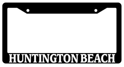 Black License Plate Frame Huntington Beach City State Auto Accessory Novelty Huntington Beach Black license plate frame made from high impact ABS plastic, covered with color vinyl printing. This frame is designed to last. These frames will last longer than your car.