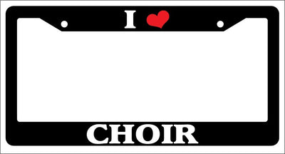 Black License Plate Frame "I Heart Choir" Auto Accessory Novelty I Heart Choir Black license plate frame made from high impact ABS plastic, covered with color vinyl printing. This frame is designed to last. These frames will last longer than your car.