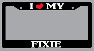 Black License Plate Frame "I Heart My Fixie" Auto Accessory Novelty I Heart My Fixie Black license plate frame made from high impact ABS plastic, covered with color vinyl printing. This frame is designed to last. These frames will last longer than your car.