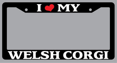 Black License Plate Frame "I Heart My Welsh Corgi" Auto Accessory Novelty I Heart My Welsh Corgi Black license plate frame made from high impact ABS plastic, covered with color vinyl printing. This frame is designed to last. These frames will last longer than your car.
