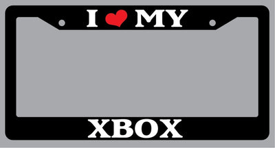 Black License Plate Frame "I Heart My XBOX" Auto Accessory Novelty I Heart My XBOX Black license plate frame made from high impact ABS plastic, covered with color vinyl printing. This frame is designed to last. These frames will last longer than your car.
