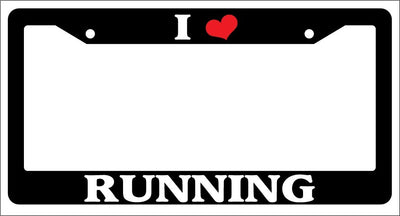 Black License Plate Frame "I Heart Running" Auto Accessory Novelty I Heart Running Black license plate frame made from high impact ABS plastic, covered with color vinyl printing. This frame is designed to last. These frames will last longer than your car.