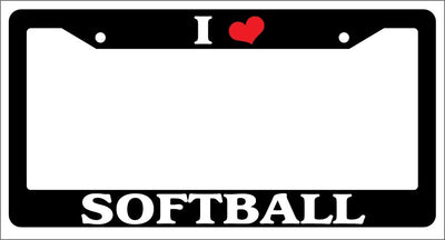 Black License Plate Frame "I Heart Softball" Auto Accessory Novelty I Heart Softball Black license plate frame made from high impact ABS plastic, covered with color vinyl printing. This frame is designed to last. These frames will last longer than your car.