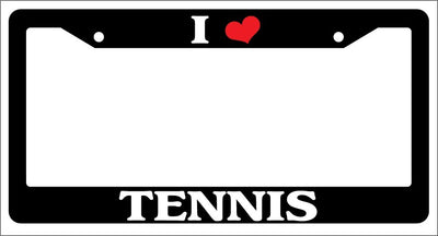 Black License Plate Frame "I Heart Tennis" Auto Accessory Novelty I Heart Tennis Black license plate frame made from high impact ABS plastic, covered with color vinyl printing. This frame is designed to last. These frames will last longer than your car.