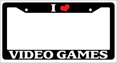 Black License Plate Frame "I Heart Video Games" Auto Accessory Novelty I Heart Video Games Black license plate frame made from high impact ABS plastic, covered with color vinyl printing. This frame is designed to last. These frames will last longer than your car.