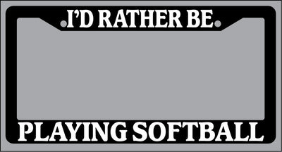 Black License Plate Frame "I'd rather be playing softball" Auto Accessory Black license plate frame made from high impact ABS plastic, covered with color vinyl printing. This frame is designed to last. These frames will last longer than your car.