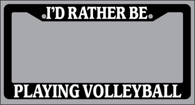 Black License Plate Frame "I'd rather be playing volleyball" Auto Accessory Black license plate frame made from high impact ABS plastic, covered with color vinyl printing. This frame is designed to last. These frames will last longer than your car.