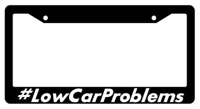 Black License Plate Frame #LOWCARPROBLEMS Auto Accessory Black license plate frame #LOWCARPROBLEMS made from high impact ABS plastic, covered with color vinyl printing. This frame is designed to last. These frames will last longer than your car.