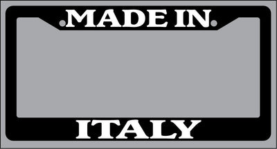 Black License Plate Frame "Made in Italy" Auto Accessory Novelty Black license plate frame made from high impact ABS plastic, covered with color vinyl printing. This frame is designed to last. These frames will last longer than your car.