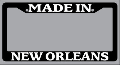 Black License Plate Frame "Made in New Orleans" Auto Accessory Novelty Black license plate frame made from high impact ABS plastic, covered with color vinyl printing. This frame is designed to last. These frames will last longer than your car.