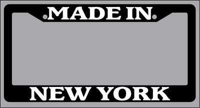 Black License Plate Frame "Made in New York" Auto Accessory Novelty Black license plate frame made from high impact ABS plastic, covered with color vinyl printing. This frame is designed to last. These frames will last longer than your car.
