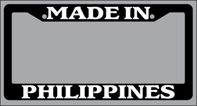 Black License Plate Frame "Made In Philippines" Auto Accessory Novelty Made in Philippines Black license plate frame made from high impact ABS plastic, covered with color vinyl printing. This frame is designed to last. These frames will last longer than your car.